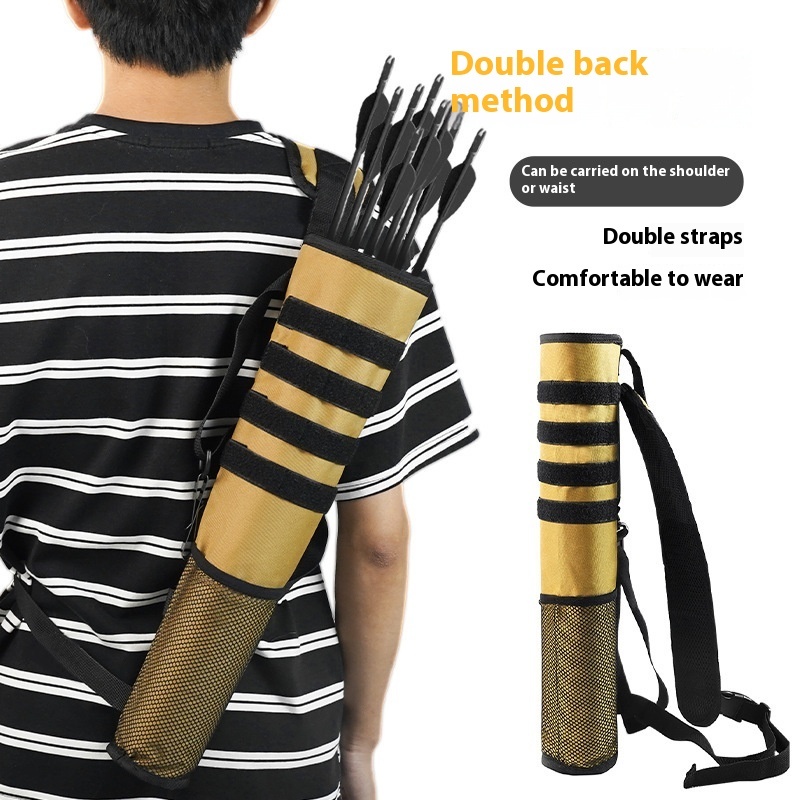 The 600D Oxford cloth body resists moisture, abrasion, and tearing through regular use. Four reinforced bands add structure without excess weight. The mesh bottom panel allows dirt and debris to fall through while promoting airflow to keep fletching dry.